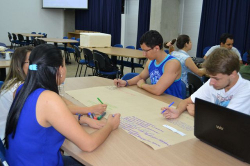 Os alunos do curso de Letras participaram do World Café, realizado na Sala de Metodologias pela Prof. Ms. Lígia M. P. de Pádua Xavier.