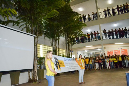 O Curso de Psicologia promoveu uma ação de sensibilização e orientação aderindo a Ação Nacional denominada de “Setembro Amarelo” destinado à Prevenção do Suicídio, quando entregaram panfletos explicativos, lacinhos amarelos, mensagens na árvore e apresentaram um vídeo emocionante encerrando o momento com a fala da Profa. Dra. Valéria Aparecida Chechia, coordenadora do curso.