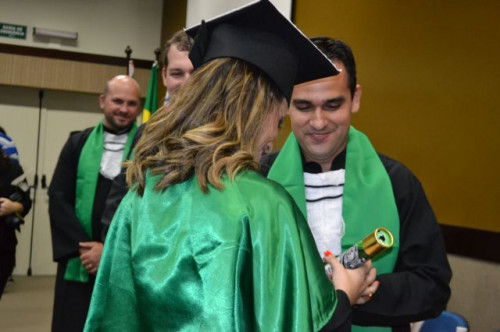Cerimônia de formatura da 11ª Turma do Curso de Fisioterapia realizada no Anfiteatro I, do UNIFAFIBE, prestigiada por familiares e amigos.
