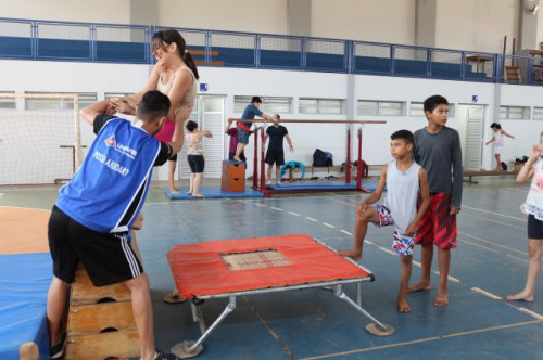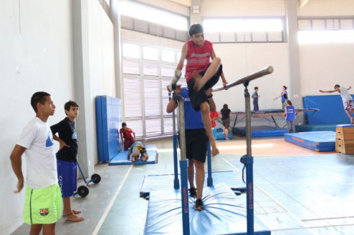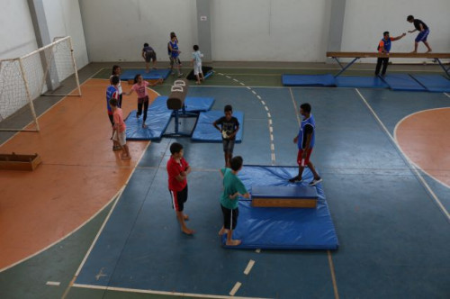 Alunos do 6º e 7º ano do ensino fundamental da Escola Estadual Bairro Cruzeiro, participaram de uma vivência em Ginástica Artística, na quadra poliesportiva do UNIFAFIBE.