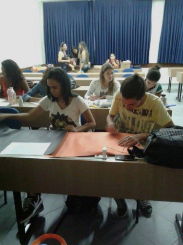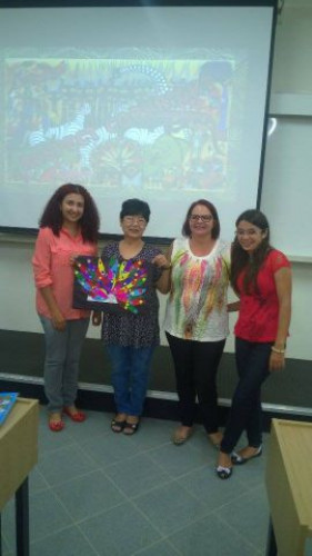 Oficina “Arte aborígene africana: releitura das obras de Tinga Tinga” desenvolvida pelos alunos do 3º ano de Pedagogia.