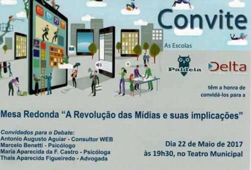 Mesa Redonda sobre "A revolução das mídias sociais e suas implicações" ocorrida no dia 15 de maio no Teatro Municipal de Bebedouro-SP.
