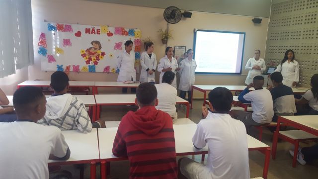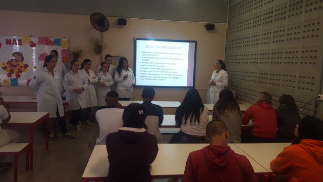 No mês de maio os alunos do 3º e 4º ano do Curso de Enfermagem ministraram palestras na Escola Estadual Jardim Souza Lima, orientados pelas docentes Bartira Palin Bortolan Pontelli, Lilian D. Pimenta Nogueira e Silvéria Maria Peixoto Larêdo.