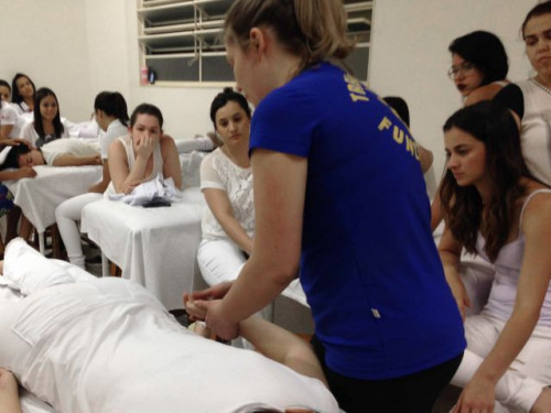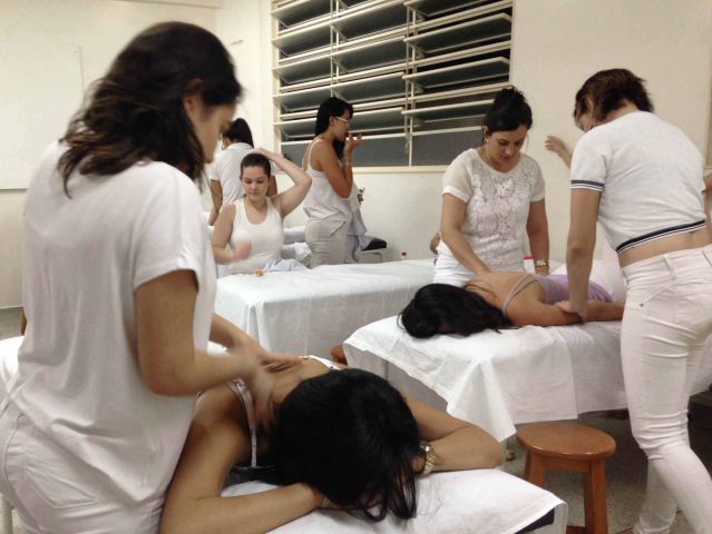 Aula prática de Shiatsu no curso de Estética