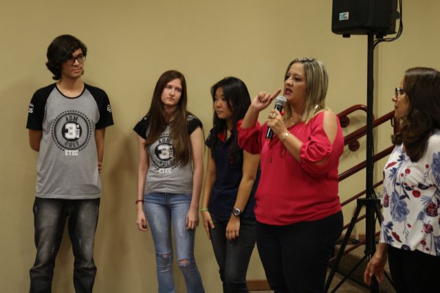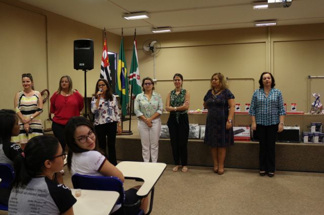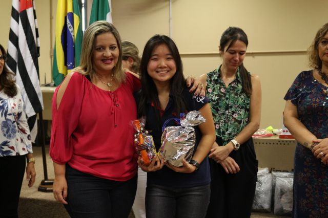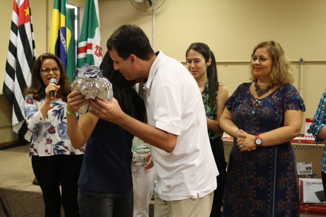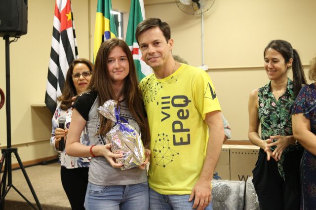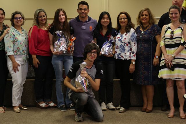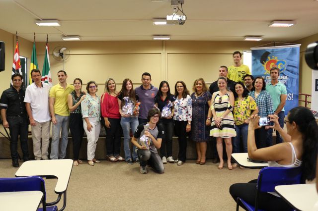 Entrega de premiação à Etec Bebedouro, escola campeã da 2ª Gincana do Conhecimento UNIFAFIBE.