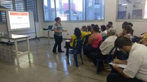 Oficina sobre alimentação saudável promovida pela Prof.ª Me. Marina Silva Bailão e alunos do quarto ano do curso de Nutrição do UNIFAFIBE.
