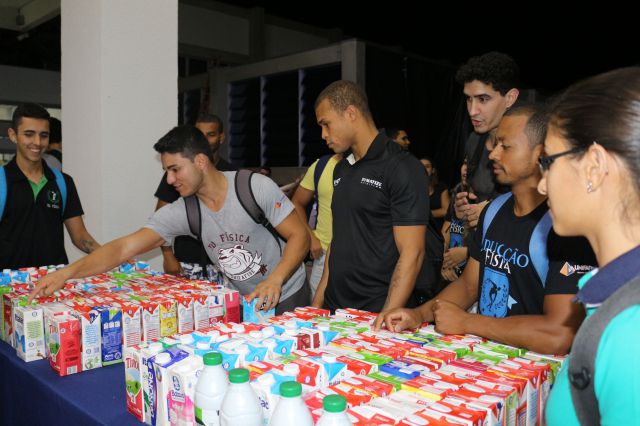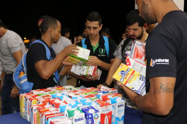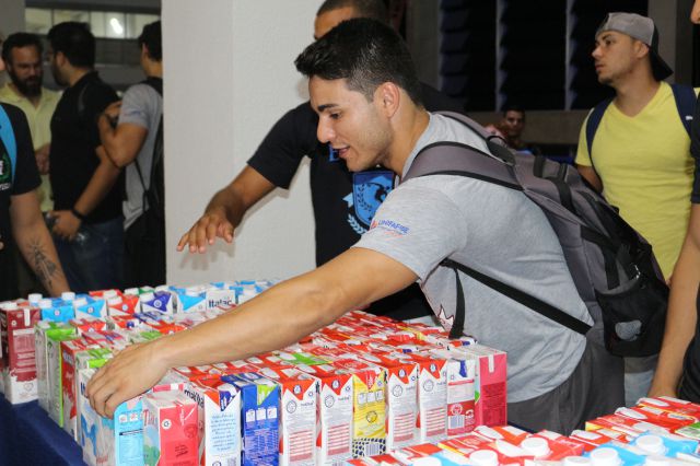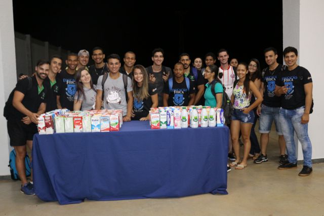 Entrega de caixas de leite arrecadadas pelos alunos do curso de Educação Física do UNIFAFIBE em prol da Vila Lucas Evangelista e Vila Vicentina, entidades cuidadoras de idosos.