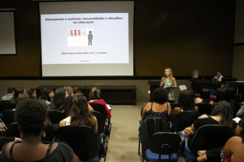 Abertura da VI Semana de Pedagogia que aconteceu no dia 18 de abril de 2018 e contou com a participação da psicóloga Maria Aparecida da Fonseca e Castro, com a palestra "Entendendo o Autismo: necessidades e desafios na educação”.