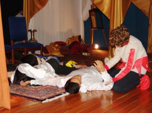Os alunos do 2º Ano de Letras se lançaram ao desafio de viver no palco a complexa tragédia "Hamlet", interpretando-a brilhantemente.