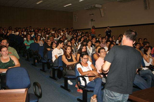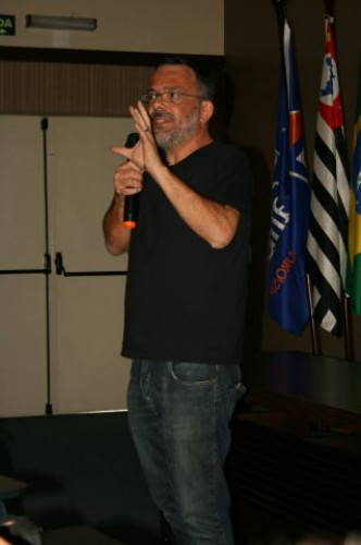 Biólogo Sérgio Rangel ministra palestra para alunos do Ensino Médio.
