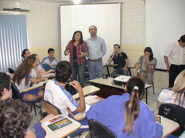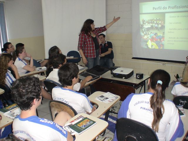 Os alunos do 3º Ano do Ensino Médio do Colégio Santo Antônio, em Pirangi, participaram da Mesa Redonda de Profissões.