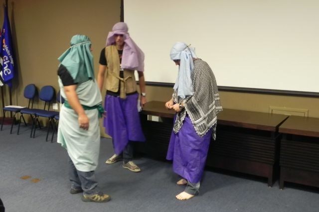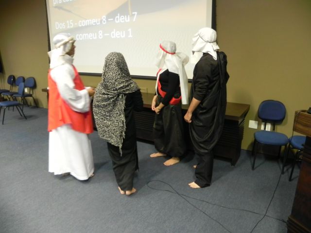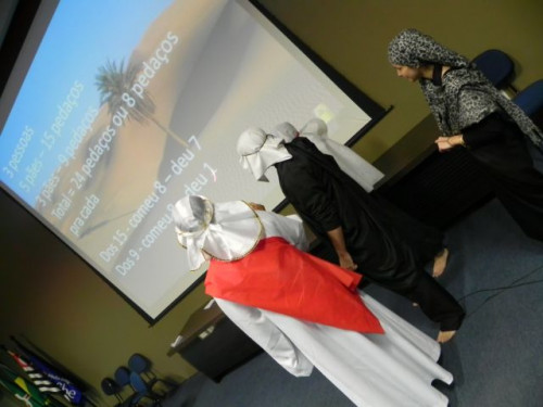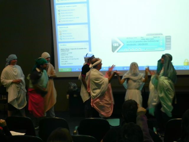 Os alunos do 1º ano de Ciências Contábeis estão realizando apresentações teatrais baseadas no livro "O Homem que calculava" (autor Malba Tahan).