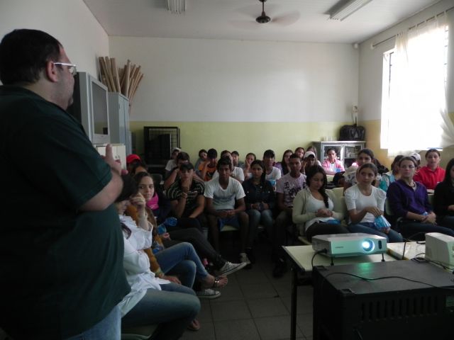 Os alunos do 3º ano do Ensino Médio da Escola Domingos Paro, em Ibitiuva, participaram de uma mesa redonda sobre profissões, quando os coordenadores dos cursos de licenciatura do UNIFAFIBE
