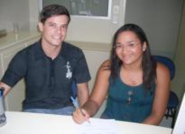 Na foto, a aluna Nádia aparece ao lado do Prof. Ms. Walison Joel Barberá Alves, coordenador do Curso de Sistemas de Informação. Muito sucesso, Nádia, nesta nova fase de experiências enriquecedoras!